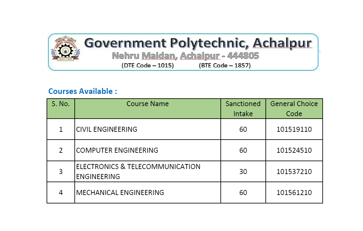 Programme Offered Menu MSBTE Result Facilities Regular Activities Right To Information Anti Ragging Committee SC-ST Committee News Letter Citizen Charter Faculty Information Women Redrassal Cell Audit Statement MOU's Information Industry Institute Cell Mandatory disclosure Infosys Springboard AICTE Approval Notice Admission 2020-21 Spot Admission Round Advertisement Regarding Spot Admission